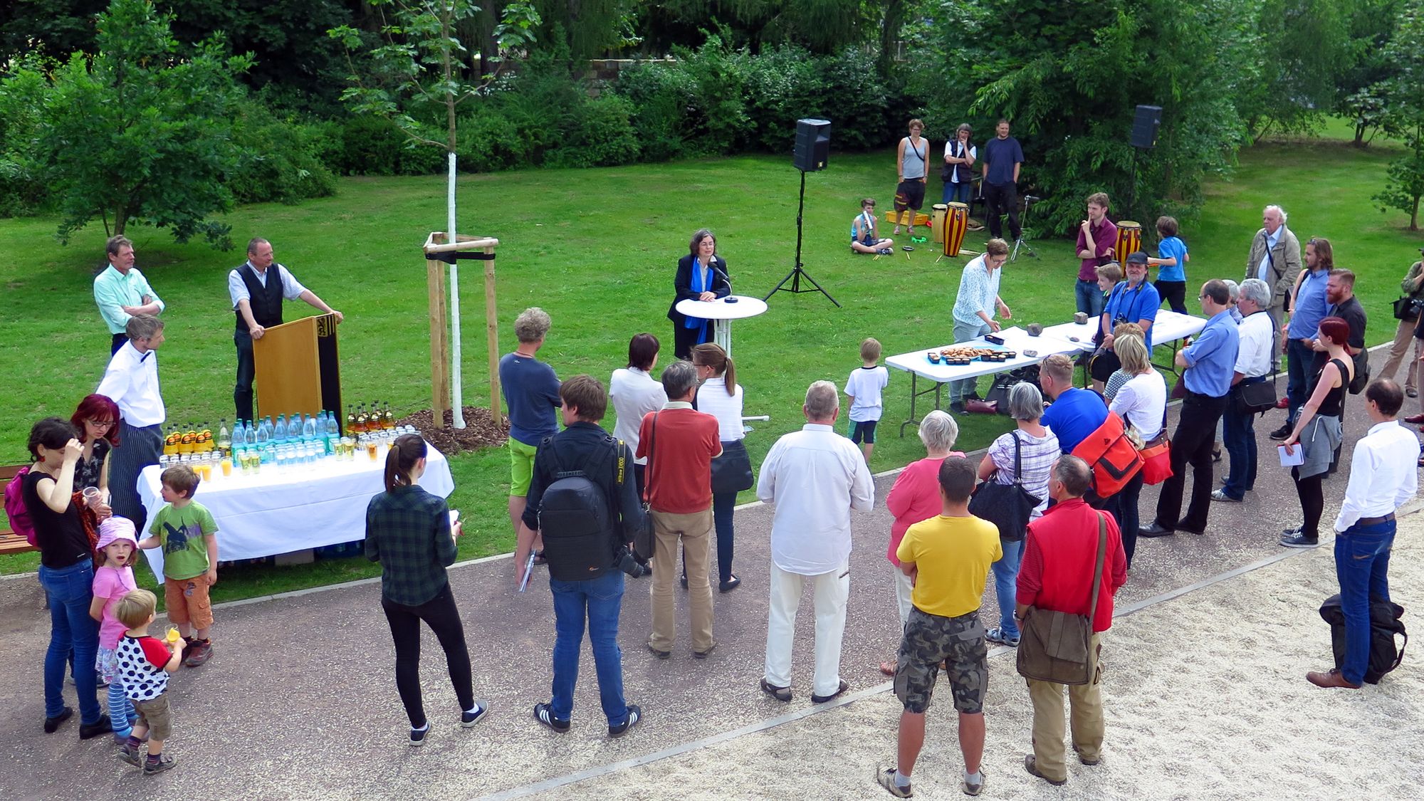 Um 15 Uhr wurde der Platz eröffnet.Heute Nachmittag hat die Dresdner Umweltbürgermeisterin Eva Jähnigen (Grüne) die Westerweiterung des Alaunplatzes eröffnet. Mit dabei war reichlich Trommelei, einigen Kindern und jeder Menge Presse. Der Platz lag seit rund 23 Jahren brach. Zuletzt wurde er als Lagerfläche für Baumaterial für das Autobahn-Amt genutzt.