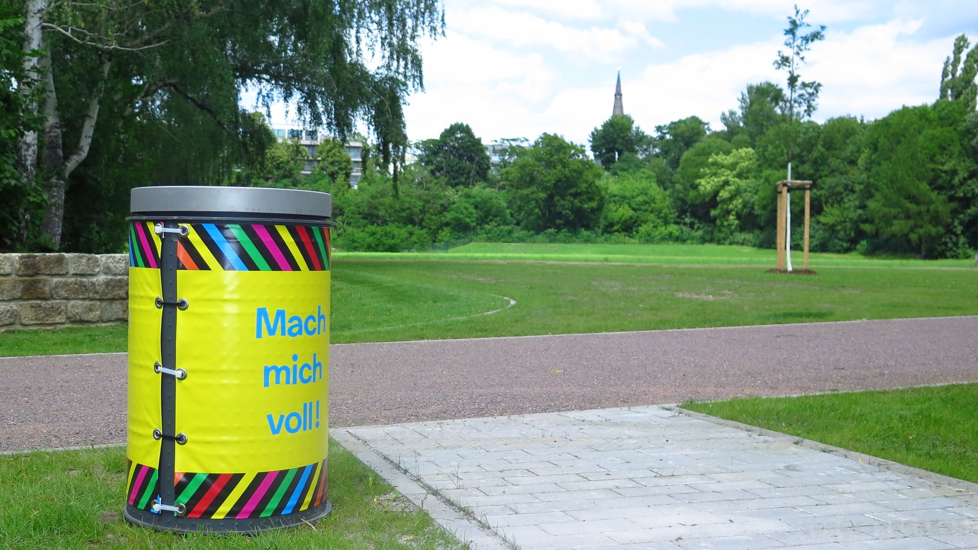 Umweltbürgermeisterin Eva Jähnigen (Grüne)Der Eröffnung ist ein knapp achtjähriger Kampf vorausgegangen. Die Fläche göhrte einst dem Freistaat Sachsen. Der wollte dort mal ein Polizeirevier eröffnen, 2013 kaufte die Stadt das Gelände. Zuerst wurde die Fläche von Schutt und Unrat beräumt. Nur der große Findling in der Mitte durfte bleiben. Die Gärtner des städtischen Regiebetriebes Zentrale Technische Dienste legten eine Wiese an. Von der Paulstraße gibt es nun einen Zugang für Westbesuch auf den Alaunplatz. Die neue Sandsteinmauer zum benachbarten Kindergarten ist, genauso wie das Spinnenhäuschen, voller Graffiti. Es gibt acht neue Bänke und elf neue Bäume und knapp 14.000 Quadratmeter neue Wiese.