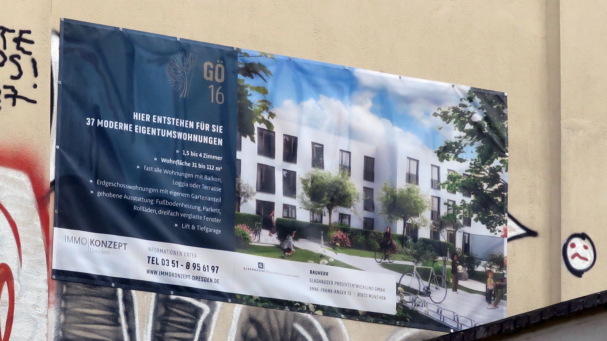 Die Wohnungen stehen zum Kauf. Für 373.000 Euro gibt es ein „komfortable Drei-Raum-Wohnung mit Garten“. Eine 37,8 Quadratmeter große Zweiraumwohnung im Vorderhaus soll 147.000 Euro kosten. In der Beschreibung steht, dass sich der Neubau harmonisch in die vorhandene, typische Straßenformation der Görlitzer Straße einfügt. Es soll auch eine Tiefgarage geben.