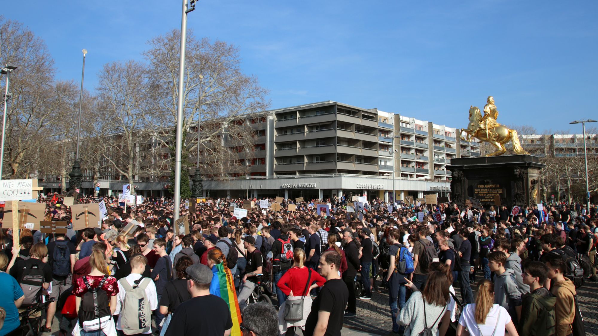 Seit 14 Uhr demonstrieren mehrere tausend, überwiegend junge Menschen für ein freies Internet und gegen die geplante Richtlinienänderung. (Neustadt-Geflüster vom 22. März).