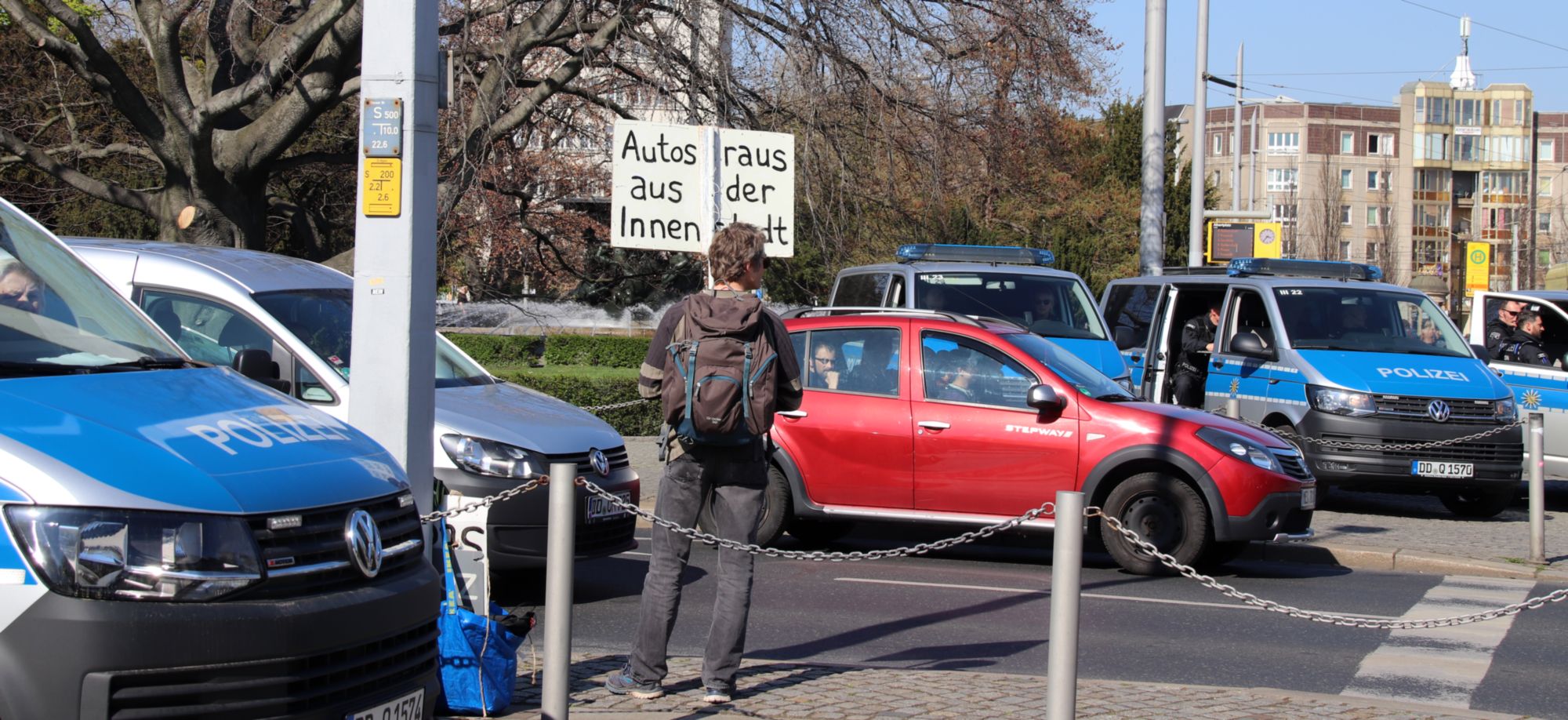 Rund um die Demonstration bildeten sich lange Staus. Vor allem am Carolaplatz verknotete sich der Verkehr, da die meisten Autofahrer*innen versuchten über Wigardstraße und Albertbrücke auszuweichen. Diese bewusste Störung des Nachmittagsverkehrs gehört zum Konzept, um größtmögliche Aufmerksamkeit zu erreichen.