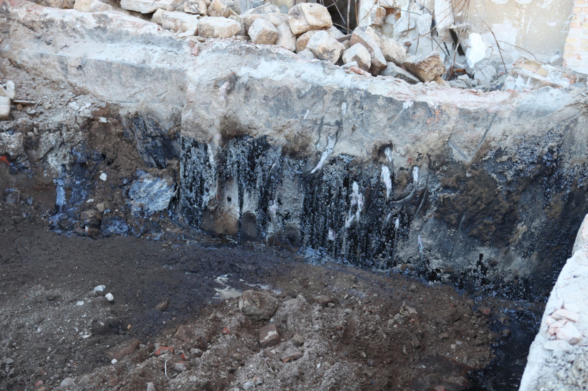 Seit etwa drei Wochen stinkt es im Scheunenhof-Viertel rund um Friedens- und Lößnitzstraße gewaltig. Je nach Windlage dringt der Teergeruch bis ins Hechtviertel. Anwohner*innen haben sich schon mehrfach beim Umweltamt beschwert und auch den Stadtbezirksbeirat Oliver Mehl (Grüne) angesprochen. Gestern gingen nun einige Bürger dem Geruch nach und fanden den Grund: An der Stelle, wo aktuell das alte Tranquillo-Lager abgerissen wird, befindet sich eine Baugrube mit teils flüssigen Teerresten und Altlasten.