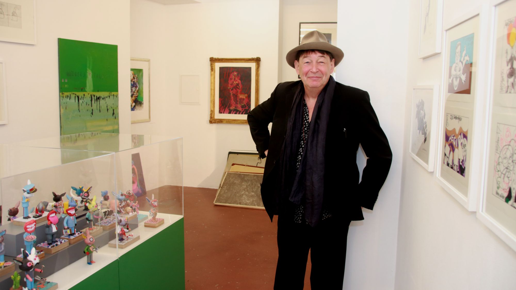 Manch Werk findet gleich seinen Platz, für manche muss er lange überlegen. „Ich versuche das gleichzeitig locker und hochkonzentriert anzugehen“, sagt John, der nicht nur Galerist, sondern selbst auch Künstler ist.