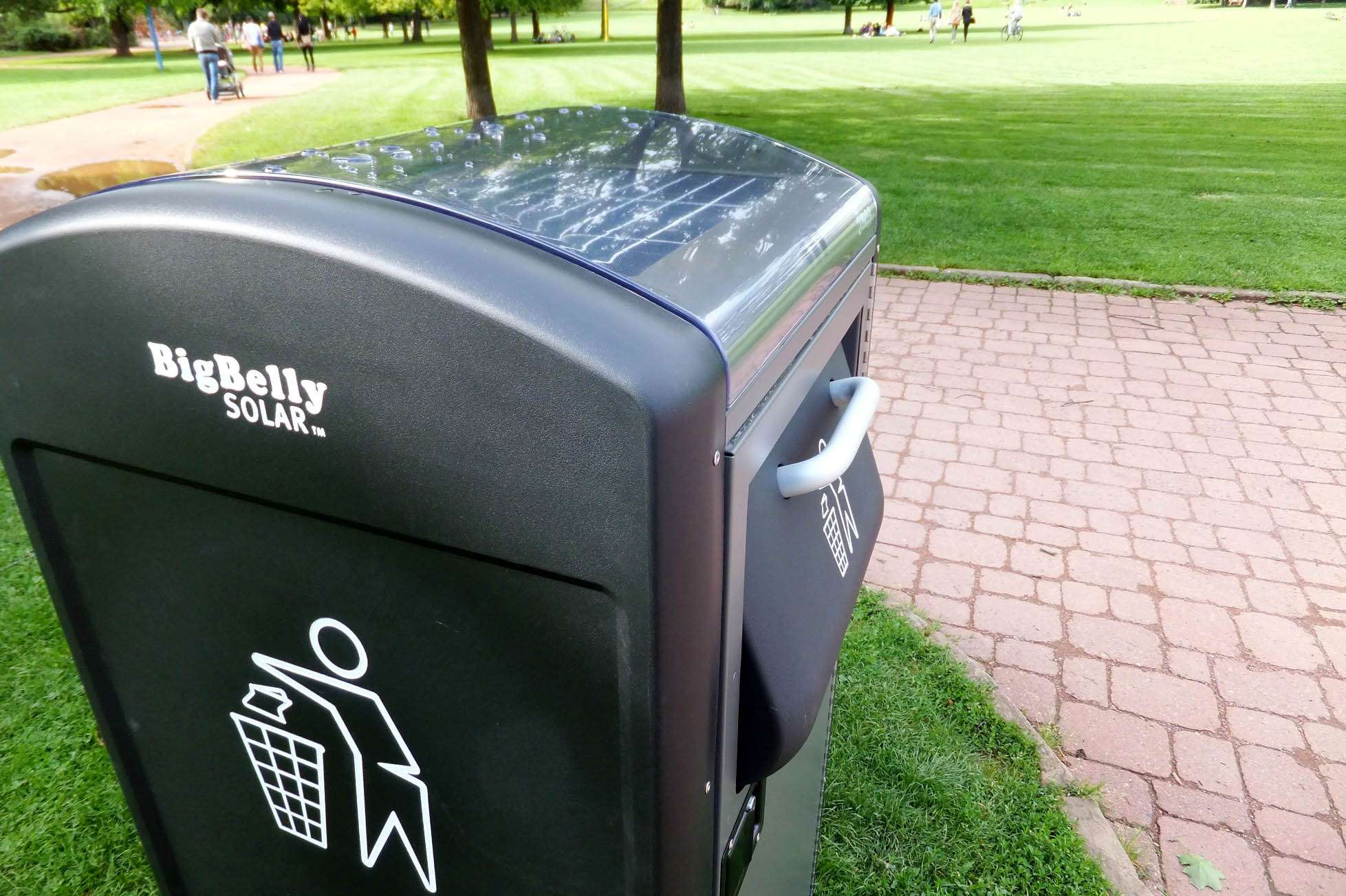 Die Tonne fasst mit 160 Litern ungefähr doppelt so viel wie ein normaler Mülleimer und arbeitet mit Solarstrom. Diesem Strom braucht Big Belly, so heißt die Tonne, für sein Müllpresswerk. So kann die Tonne laut Werbetext das Siebenfache einer normalen Mülltonne aufnehmen. Das Amt für Abfallwirtschaft will die Tonnen nun erst einmal drei Monate lang testen. Denn die Anschaffungskosten sind mit 3.000 bis 4.000 Euro pro Tonne doch etwas höher als für gewöhnliche Mülleimer.Solarzellen erzeugen Strom für das Presswerk.
