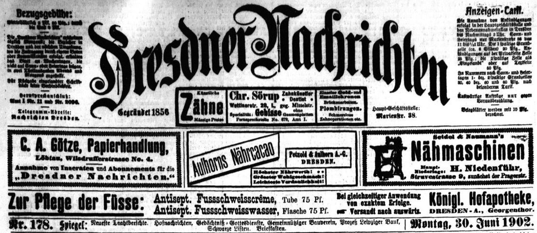Unter der Rubrik „Vor 100 Jahren“ veröffentlichen wir in loser Reihenfolge Anekdoten aus dem Leben, Handeln und Denken von Uroma und Uropa. Dafür durchstöbert der Dresdner Schriftsteller und Journalist Heinz Kulb die Zeitungsarchive in der Sächsischen Landes- und Universitätsbibliothek. Der vorliegende Text ist literarischer Natur. Grundlage bilden die recherchierten Fakten, die er mit fiktionalen Einflüssen verwebt.