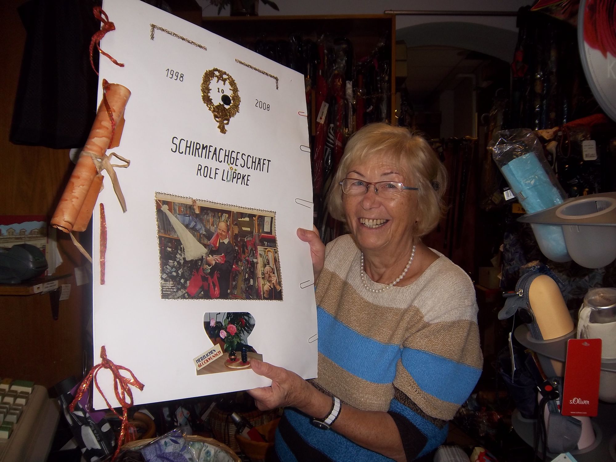 Hinter der Verkaufstheke, die den Raum quer durchtrennt, steht Lieselotte Hoffmann vor Regalen, die vor lauter Schirmen fast bersten wollen. Hunderte stehen und liegen hier im Angebot, die genaue Zahl kann weder Mitarbeiterin Hoffmann noch Inhaber Rolf Lippke genau bestimmen. Es eröffnet sich mir ein Universum: Schirm ist nämlich nicht gleich Schirm. Es gibt sie für Herren, Damen, Kinder, Pärchen, für sonnige und regnerische Tage, zum praktischen Zusammenschnappen und eleganten Spazieren, für Bräute, für den Strand, fürs Camping und als Ergänzung zum Outfit.
