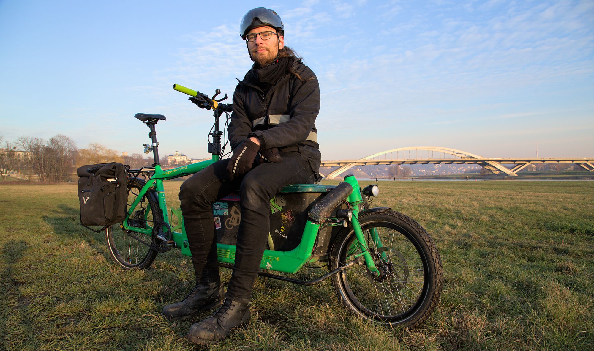 Marcus ist Softwareingenieur und fährt nahezu täglich mit dem Lastenrad entlang des Elberadweges. Er sagt: „Als Verbesserung für das Pendeln im Winter würde ich mir noch einen besseren Winterdienst für die Hauptverkehrsrouten wünschen.“ Gerade auch im Hinblick auf die Knotenpunkte, da seien abgesenkte Bordsteine bzw. Auffahrten zu Radwegen oft zugeschoben. Die gefrorene Haufen würden den Zugang zu den Wegen blockieren – oft noch tagelang, nachdem der Großteil des Schnees bereits geschmolzen ist. Er setzt für seine Wintertouren auf passende Reifen und sagt, dass er so kaum langsamer ans Ziel gelangt, als im Sommer.