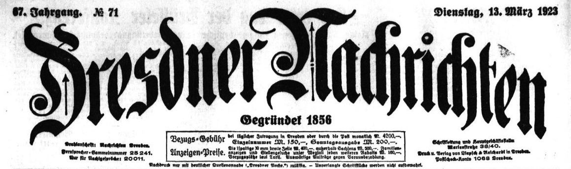 Unter der Rubrik „Vor 100 Jahren“ veröffentlichen wir in loser Reihenfolge Anekdoten aus dem Leben, Handeln und Denken von Uroma und Uropa. Dafür durchstöbert der Dresdner Schriftsteller und Journalist Heinz Kulb die Zeitungsarchive in der Sächsischen Landes- und Universitätsbibliothek. Der vorliegende Text ist literarischer Natur. Grundlage bilden die recherchierten Fakten, die er mit fiktionalen Einflüssen verwebt.