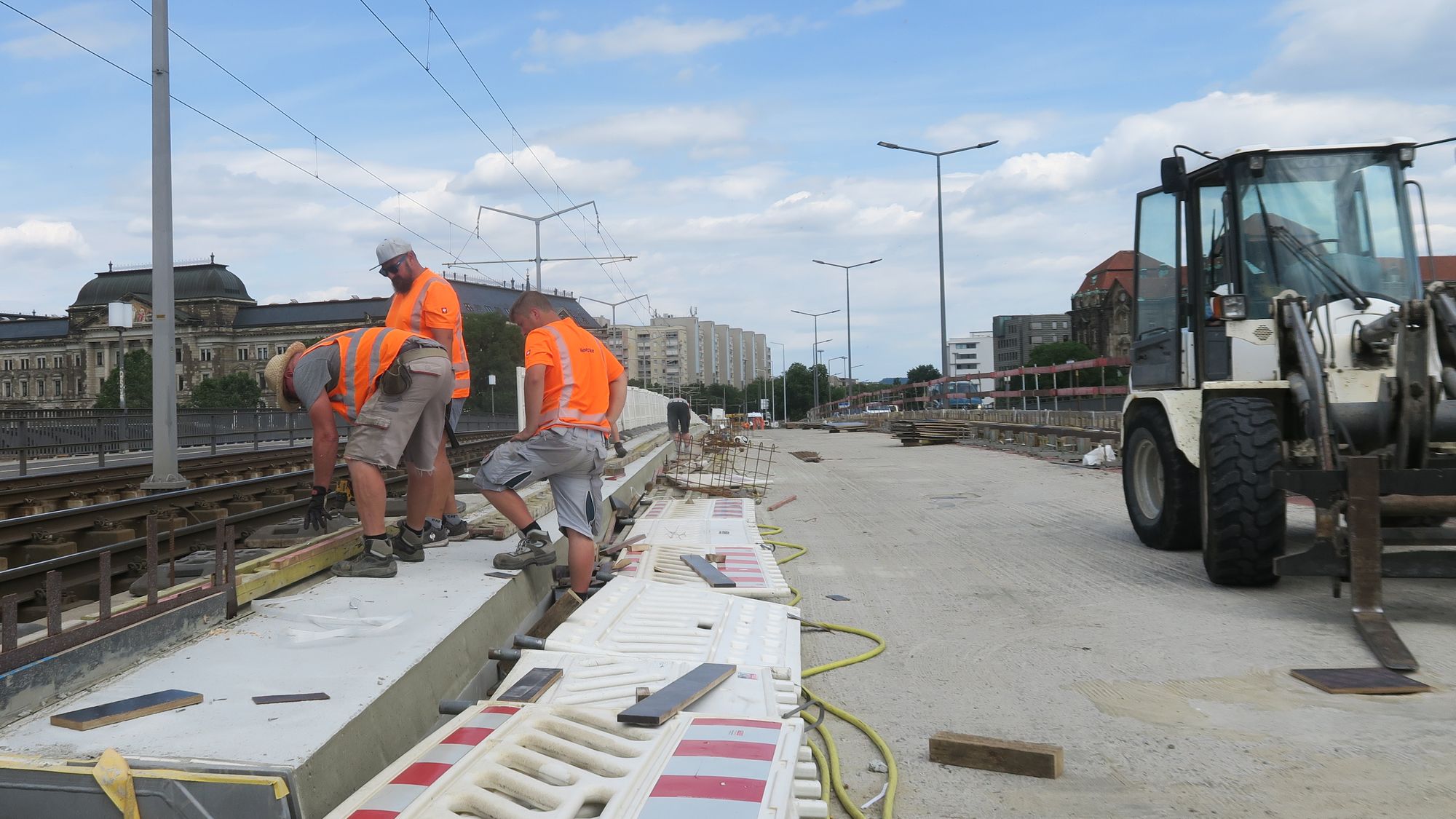Alle Abbrucharbeiten sind bereits abgeschlossen. Sogar die Abdichtungsarbeiten im Bereich der Brückenkappen sind fast beendet. Nun folgt der neue Aufbau des sichtbaren Betons. Um mehr Platz für Geh- und Radwege zu schaffen, wird die Brücke um circa einen Meter verbreitert. Außerdem wird in einem Reallabor der Stadt die neue Verkehrsplanung erarbeitet.