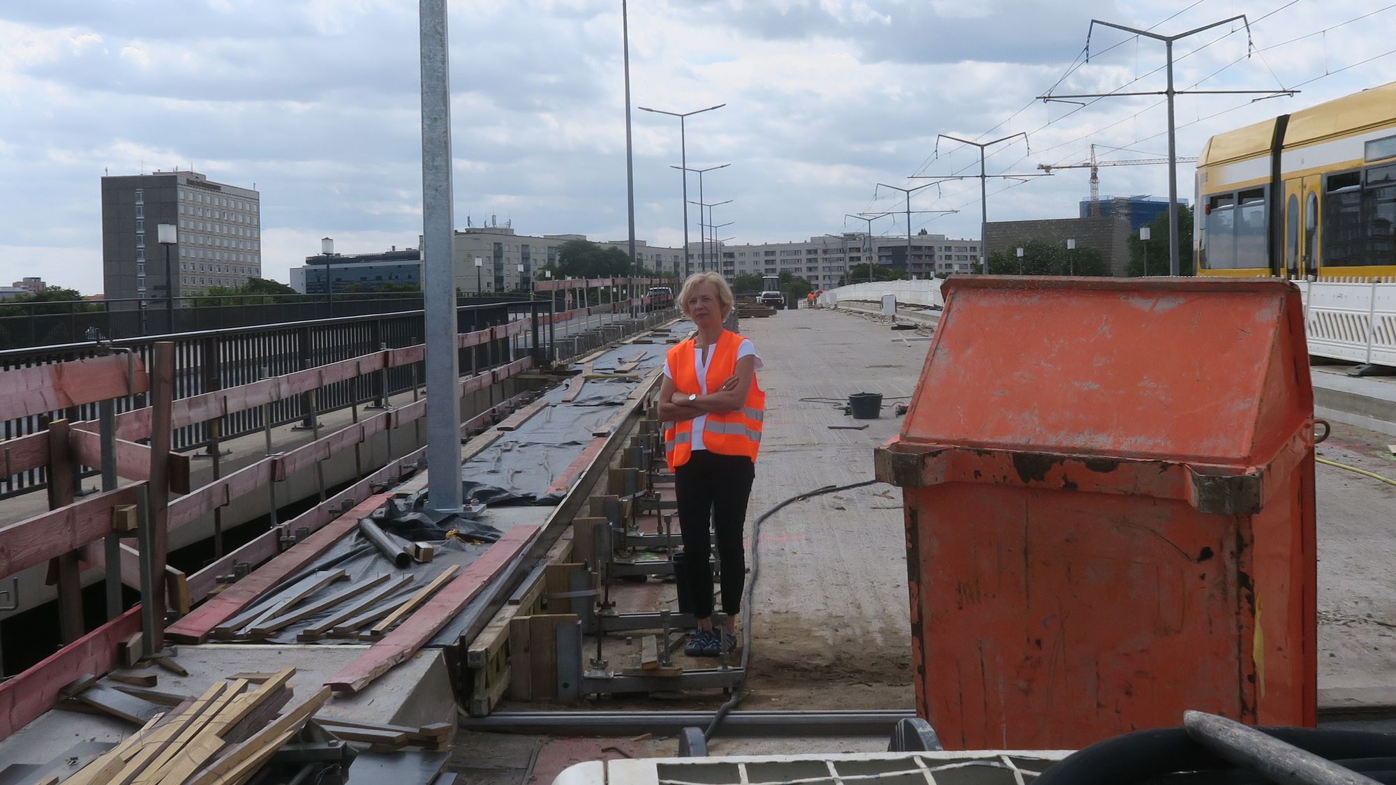 Obwohl sich das immerhin schon 56 Jahre alte Spannbetontragwerk in einem guten Zustand befindet, müssen einzelne Stellen erneuert werden. Simone Prüfer, Projektleiterin des Straßen- und Tiefbauamtes, sagt, die größte Herausforderung zurzeit sei die Hitze. `Das Aushärten des Betons müsse bei diesen Temperaturen genau beobachtet werden. Man sei aber im Zeitplan und zufrieden mit dem bisherigen Fortschritt.