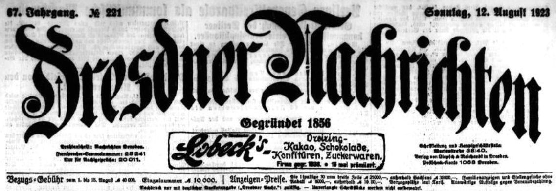 Der zwölfjährige Edgar aus der Bautzner Straße 28 war in großer Bedrängnis. Schon den ganzen Nachmittag eilte er von Geschäft zu Geschäft. Niemand konnte oder wollte seinen 5-Millionen-Schein wechseln. Seit Wochen kam sein Vater am Zahltag als „Millionär“ nach Hause. Und als Taschengeld für den Monat August 1923 bekam Junior eben diesen Riesenschein. Da hatte er noch Glück. Der Herr Papa war städtischer Beamter und brachte mehrere noch größere Scheine in die Haushaltskasse ein. Mutter stöhnte. Man hatte zwar „viel Geld“ in der Tasche, aber es fehlte am Kleingeld. Nicht in Form von Münzen. Die waren schon lange nichts mehr wert, sondern kleine Scheine in der Ausgabe von Hundert und Tausend oder Hunderttausend Mark. An den Banken und der Sparkasse war zu lesen: „Heute kein Geldwechsel“. Die Druckereien kamen mit dem Druck der inflationären Papierfahnen nicht mehr hinterher.1