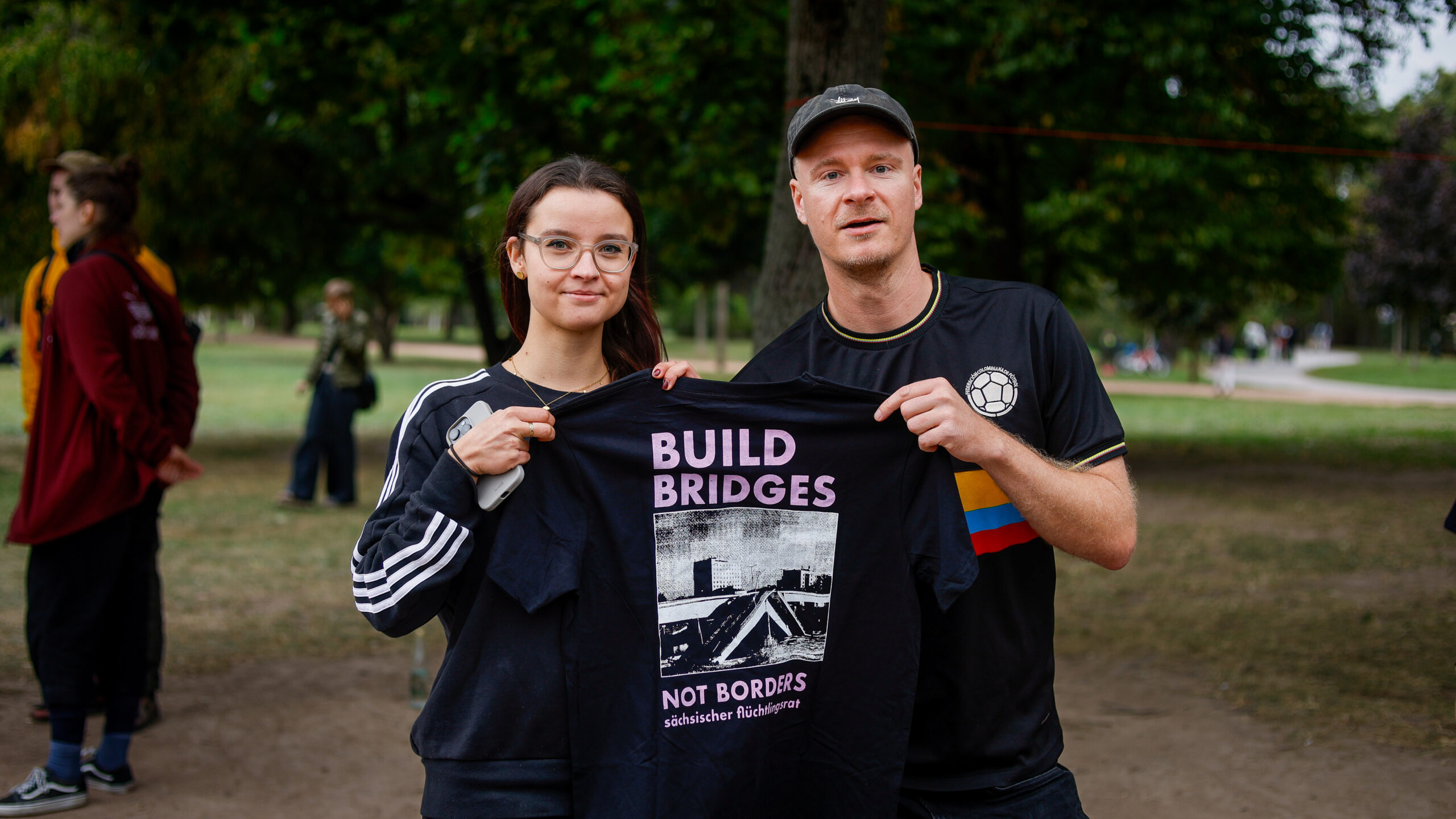 Und wieder gab es Gegenprotest und eine Spendenaktion. Diesmal für die Kampagne „Still Loving Bleiberecht“, die der Sächsische Flüchtlingsrat (SFR) just vor zwei Tagen ins Leben gerufen hatte, um Geld für Engagement für Geflüchtete zu sammeln. „Wir setzen uns seit dreißig Jahren für Menschenrechte ein. Wir sind kritisch, und wir sind laut“, erklärt Dave Schmidtke vom SFR.
