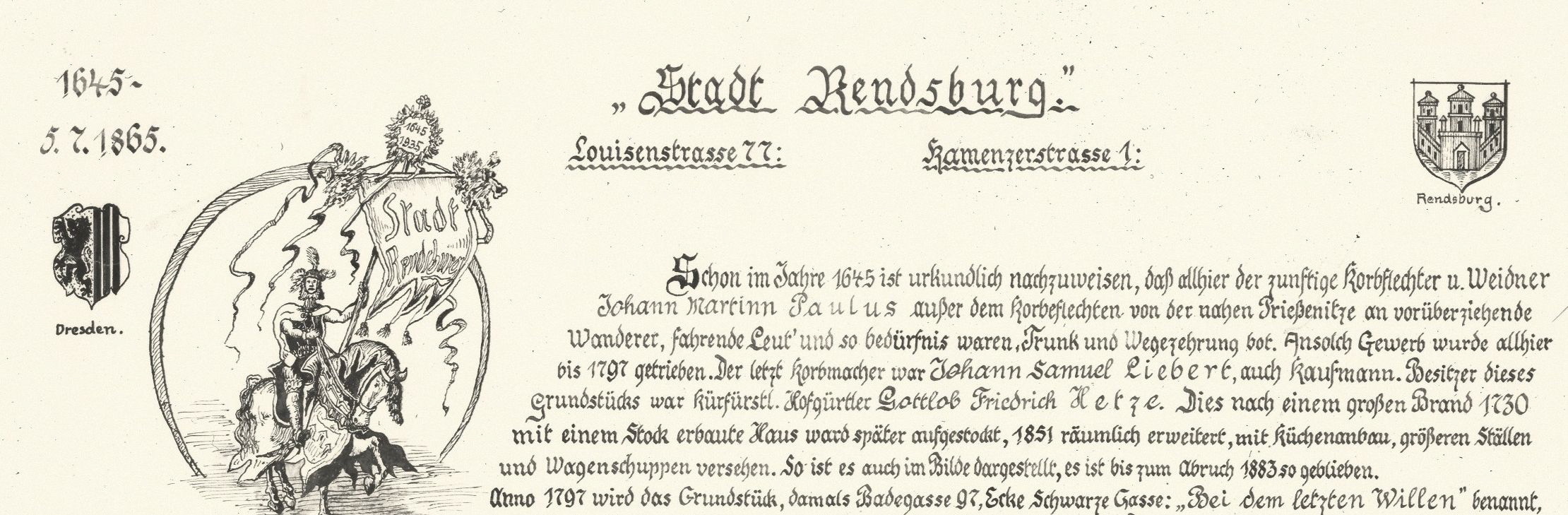 Das Haus an der Louisenstraße, Ecke Kamenzer, hatte eine lange Tradition hinter sich. Eine erste urkundliche Erwähnung gab es 1645. Ein Korbflechter und Weidner namens Johann Martin Paulus bekam, wie aus einer alten Chronik hervorging, die Lizenz, „an vorüberziehende Wanderer, fahrende Leute und so das Bedürfnis war“, Trunk und Wegzehrung anbieten zu dürfen. Im Laufe der Zeit wurde um-, an- und aufgebaut, den Kriegen und Besatzungen getrotzt. Im Jahre 1797 wurde der Gasthof mit dem neuen Namen „Bei dem letzten Willen“ erwähnt.
