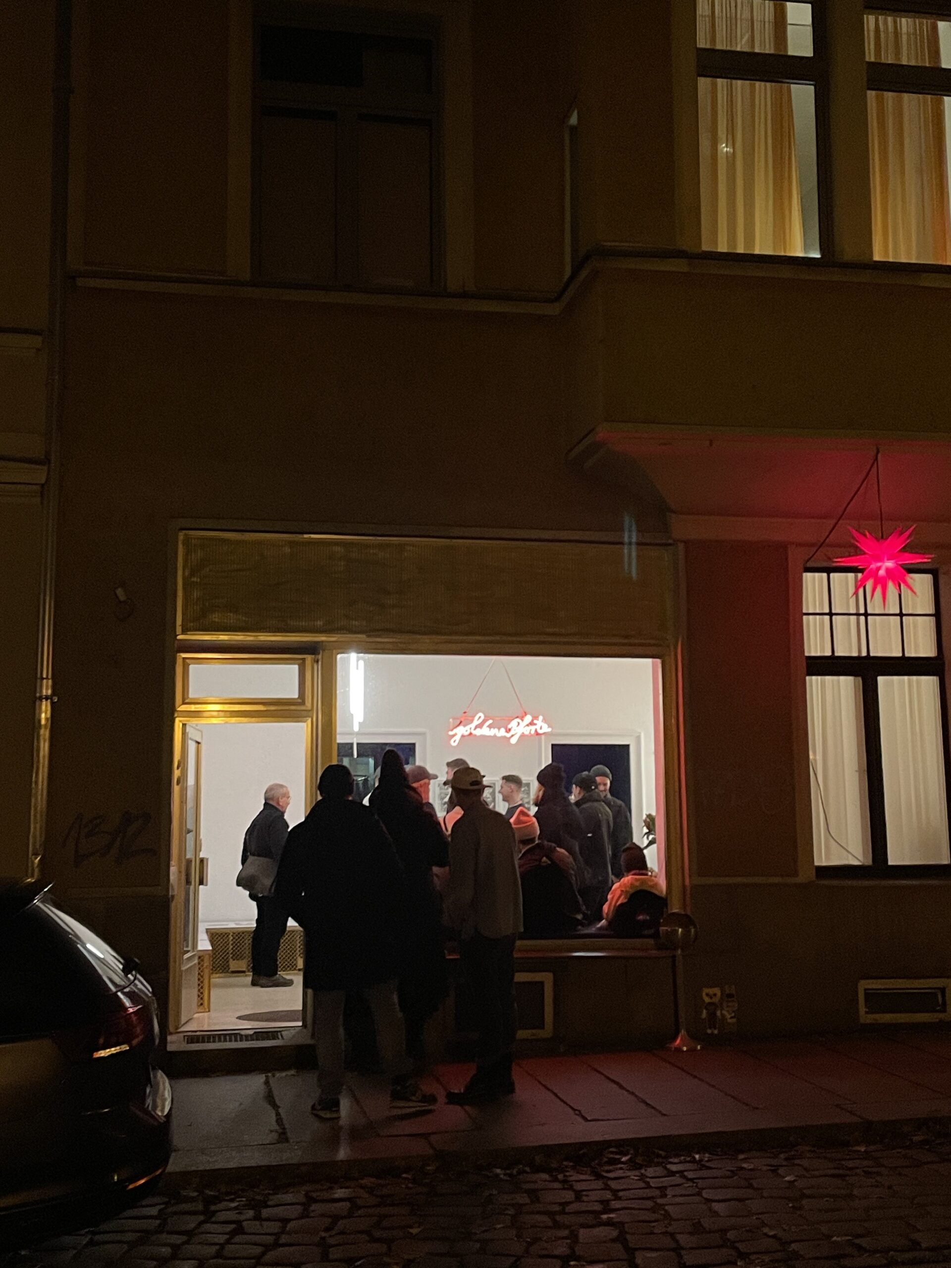 Im Gegensatz zum Pop-Up im Sommer dämmerte es diesmal wintertypisch bereits am frühen Abend. Der Stimmung in der goldenen Pforte schadete das jedoch nicht – im Gegenteil: Bei winterlichen Getränken wie Punsch, heißem Hugo oder Glühwein ließen sich die kalten Temperaturen gut ertragen. Auch der Zahl der Teilnehmenden tat das keinen Abbruch: Die goldene Pforte füllte sich zügig, und schon nach kurzer Zeit mischten sich Freunde, Familie und Besucher:innen zwischen Keramik, Textilien und ASO-Stühlen.