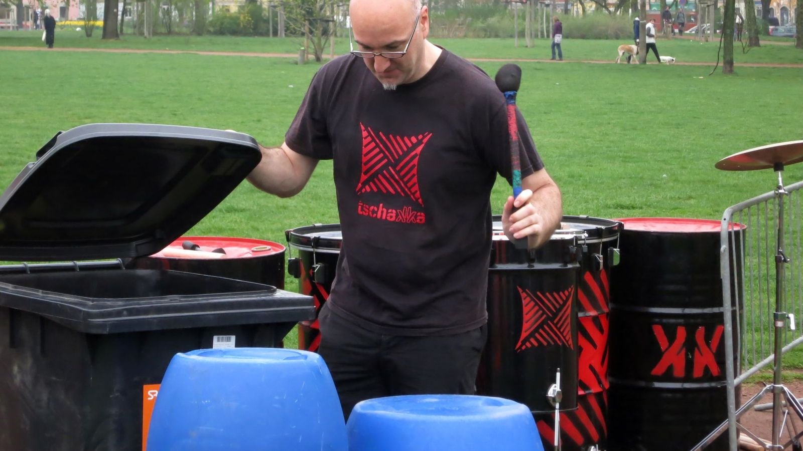 Dennoch wurden Mülltüten und Westen verteilt, zwei Blechtrommler der Gruppe „tschakka“ zeigten, dass man auch aus Mülltonnen Musik herausholen kann und Bratwürste warteten auf ihren Einsatz. Die Sammler fanden dann auf der Wiese vor allem noch jede Menge Kronkorken und Zigaretten-Stummel.