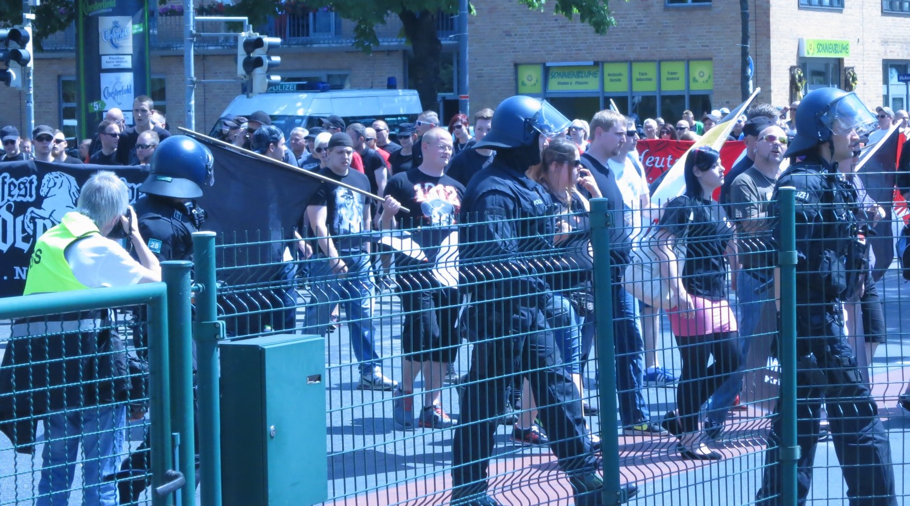 Nach Angaben der Polizei haben sich nur etwa 400 Rechte an der Demo beteiligt. An der Industriestraße Ecke Kopernikusstraße läuft derzeit die Abschlusskundgebung. Rund um das Gelände finden im Moment mehrere spontane Gegendemonstrationen statt.