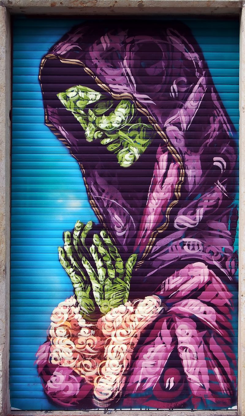 Das „Casablanca“ hatte zum Jahreswechsel wiedereröffnet. Aus dem ehemaligen Kino ist jetzt ein Medien-Café, ein kleines Kultur-Zentrum geworden. Da war es nun mal an der Zeit den Jalousien einen neuen Anstrich zu verpassen. Fabian Rönsch, der mit der Website www.street-art-dresden.de die Kunst auf Dresdner Straßen und Plätzen dokumentiert, organisierte kurzerhand ein paar Künstler, die brachten Dosen, Pinsel, Lösungsmittel und Klebeband mit und so bekamen die Jalousien ihren neuen Anstrich. Der „Casablanca“-Schriftzug am ehemaligen Eingang wurde erhalten.