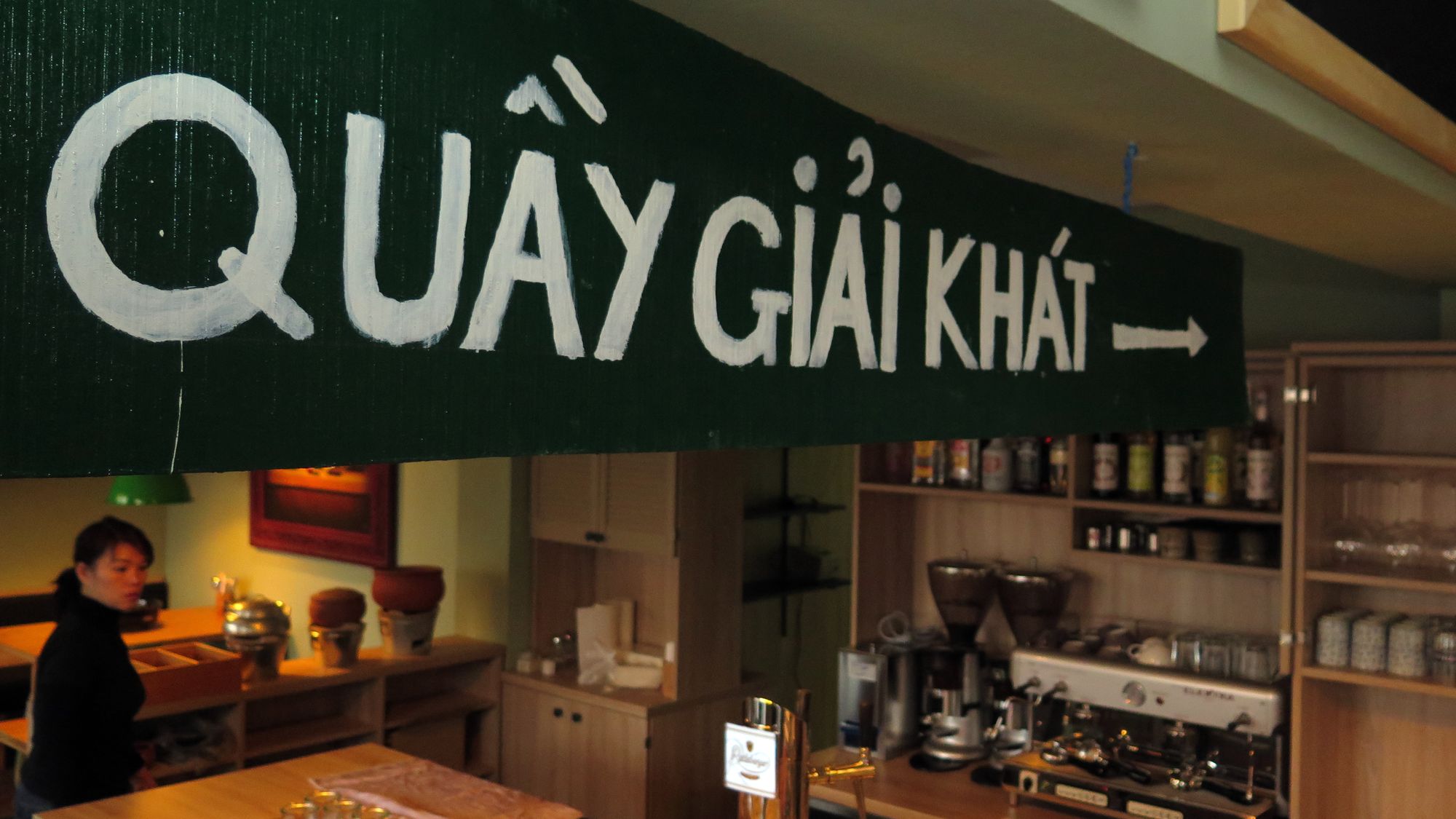Nun steht die Eröffnung an und Frau Dannemann kann gar nicht dabei sein, sie ist gerade frisch Mutter geworden. Dafür geben sich alle anderen umso mehr Mühe. Stolz zeigt mir Herr Phan die Räume. Der vordere Bereich soll an Hanoi erinnern, die Straßenschilder verweisen auf die vietnamesische Hauptstadt. In den Bücherregalen an den Wänden steht vietnamesische Literatur, die Bilder an den Wänden, na klar, auch vietnamesisch.