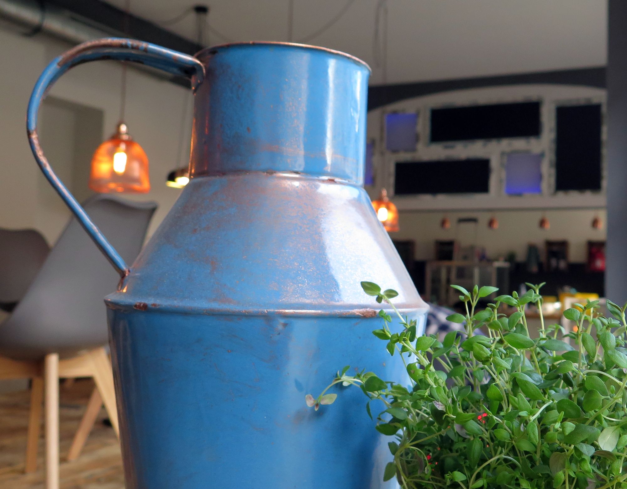 Das Konzept: ein Tages-Bistro. „Wir öffnen von 8 bis 18 Uhr, täglich wird das Mittagsangebot wechseln“, erklärt René. Dazu gibt es Suppen, Salate, Süßspeisen und Kuchen aus eigener Produktion. Dabei wollen sie sowohl die ganz Eiligen, die „Büro-Mittagsjäger“ und auch die „Daheim-Esser“ erreichen. Für die gibt es das umweltfreundliche Pfand-Weckgläschen zum Mitnehmen, welches eingetauscht oder aber neu aufgefüllt werden kann. Und abends? Dan erklärt: „Da kann man die Räume mieten – für eine kleine Feier oder ein Geschäfts-Essen mit fünf Gängen.“
