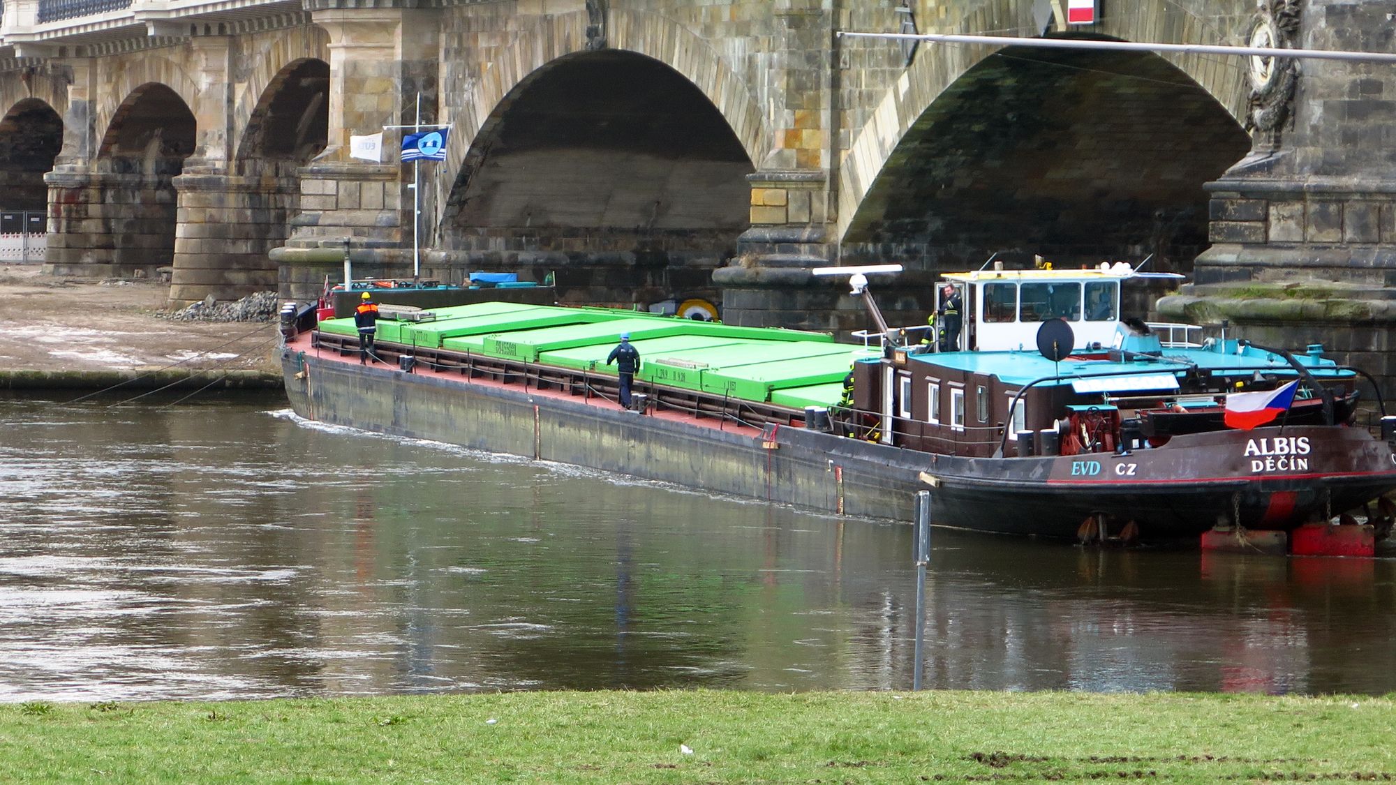 Wie Klaus Kautz, der Leiter des Wasser- und Schifffahrtsamts Dresden heute Mittag mitteilt, hat die schwerste Havarie auf der Elbe in Sachsen seit 1978 ein glückliches Ende gefunden. Das Motorgüterschiff wurde heute um 12:10 Uhr durch zwei schwere Berge- und Räumfahrzeuge der Technischen Rettungseinheit der Feuerwehr der Tschechischen Republik und dem Heckradschlepper „Beskidy“ von der Brücke weggezogen. Die „Albis“ setzte daraufhin ohne größere Schäden Ihre Fahrt zum Heimathafen in der Tschechischen Republik fort.