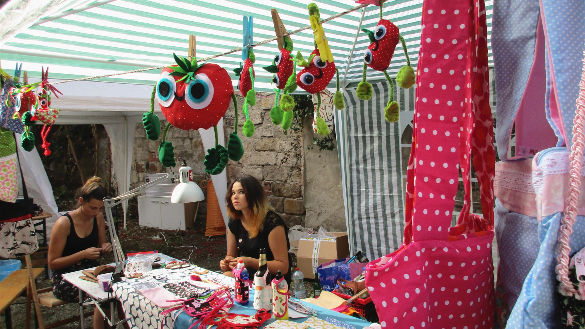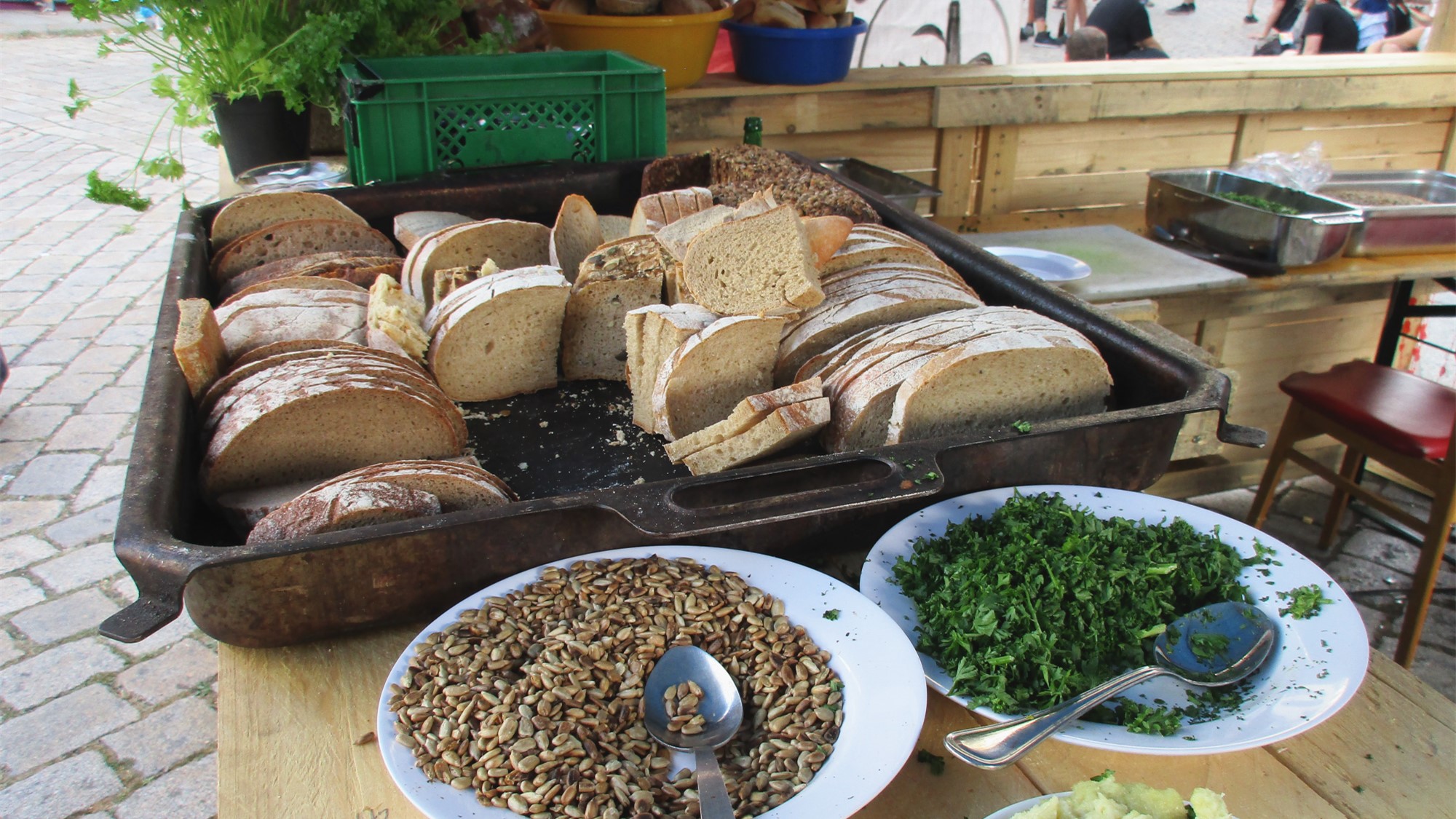 Anstatt wildem Gedränge herrscht gemütliches Gewusel. An mancher Ecke vermengt sich Raggae mit Rock und Techno, an anderer Stelle geben die kleinsten Anwohner ihre musikalischen Künste zum besten. Als ich Kohldampf bekomme, schaue ich, was es an Fressalien gibt. Ich entdecke den Stand zweier Rudolfs und probiere mich durch deren französische Quiche, arabischen Bulgur-Salat und türkischen Aufstriche mit Fladenbrot (alles selbstgemacht!). Ein paar Meter weiter genieße ich zum Dessert eine Zimtschnecke, die um einiges besser schmeckt als die Ikea-Schnecke. Als Dank geb‘ ich der Bäckerin einen kleinen Obolus. Auch in diesem Jahr galt bei Rudolf Rocks das Prinzip der freiwilligen Spende.