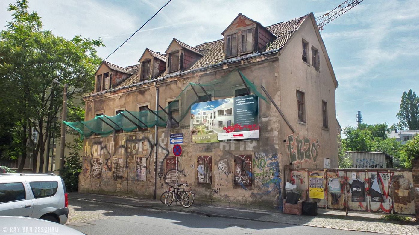 Mhm, „Weiße Fassadenelemente und große Fensterflächen unterstreichen die moderne Architektur.“ Wie das aussieht kann man sich im SZ-Link oder als gebauten Alptraum zwischen REWE und Böhmischer anschauen.