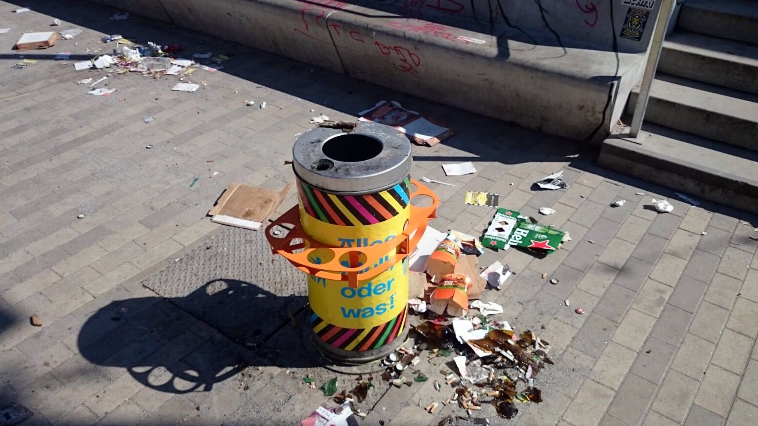Wo ist das Problem seinen Müll zu Hause zu entsorgen, bzw. die Mülltonne um die Ecke zu benutzen? Das macht also die Neustadt aus, sich darüber hinwegzusetzen nur um anders zu sein? Interessant.