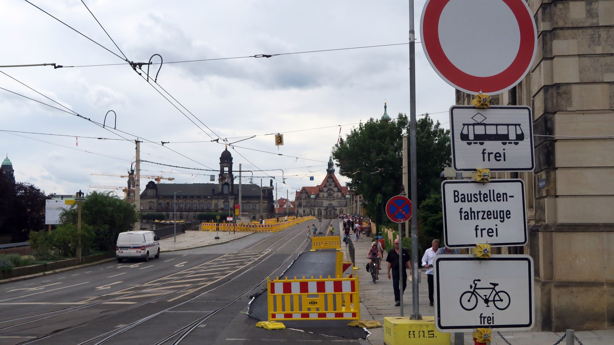 Mit der „3“, „7“, „8“ und „9“ fahren während der Bauzeit dann insgesamt vier Linien über die Carolabrücke, über die Marienbrücke rollen die Linien 4, 6 und 11. Im Störungsfall auf einer der beiden Brücken bleibt damit für den Straßenbahnverkehr nur noch die jeweils andere Brücke als sinnvolle Umleitungsalternative – die Albertbrücke ist zu weit entfernt.