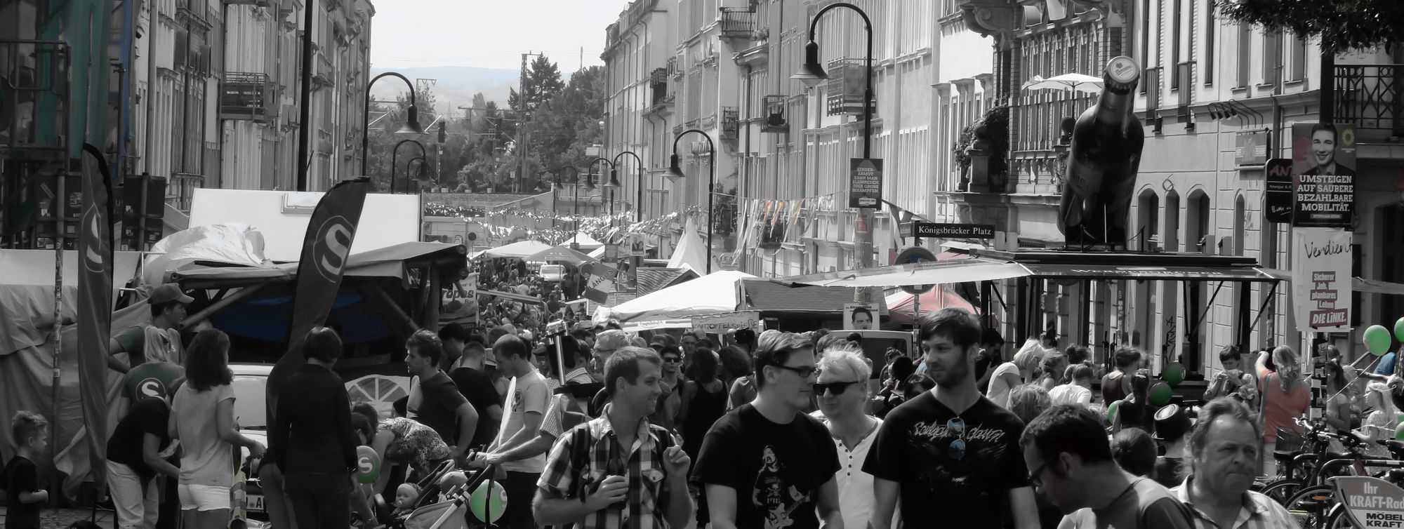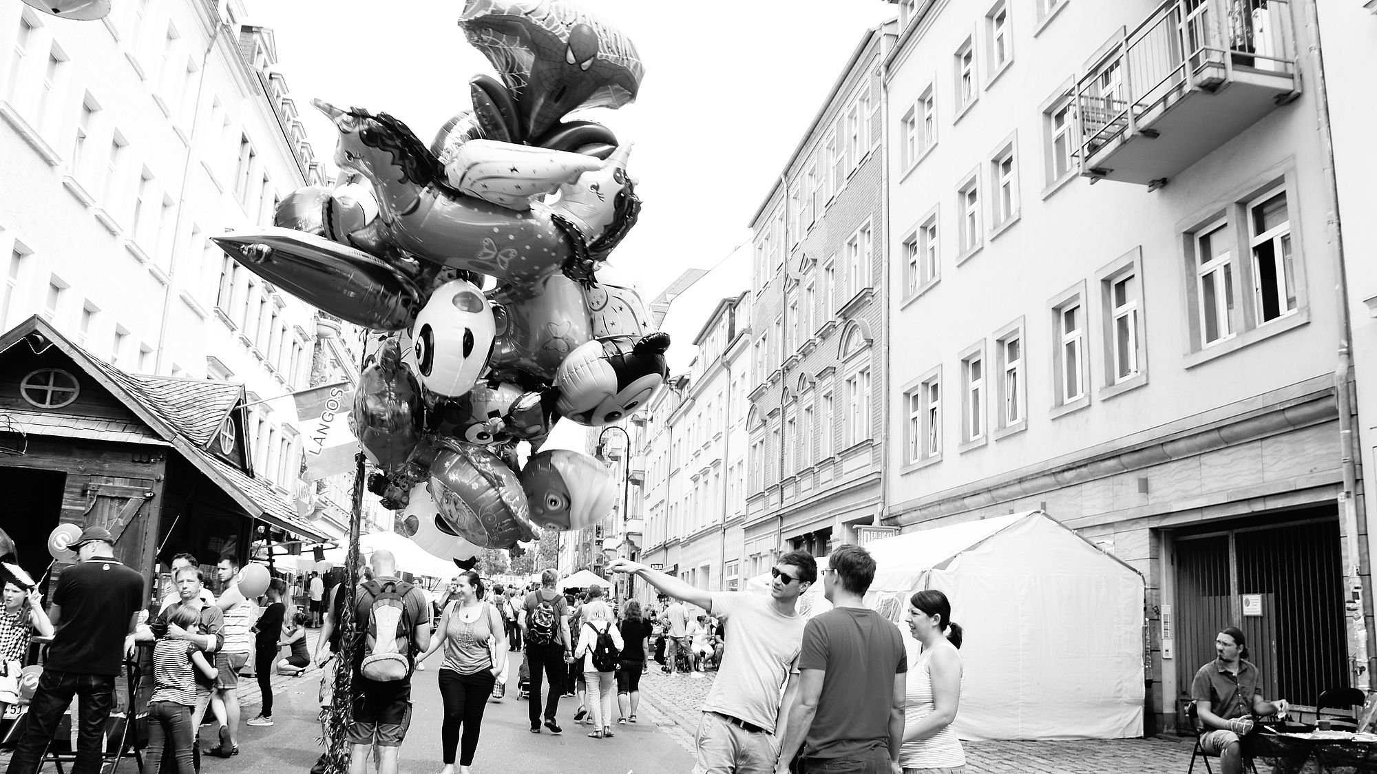 Ich stelle mich gleich noch als S-Bahn-Werbeträger an. Heliumballons, diese Teufel! Gegenüber verkauft ein pummeliger Engel sein himmlisches Lächeln und unterhalb des AZ Conni blubbern die letzten Reggea-Bässe aus den Boxen.