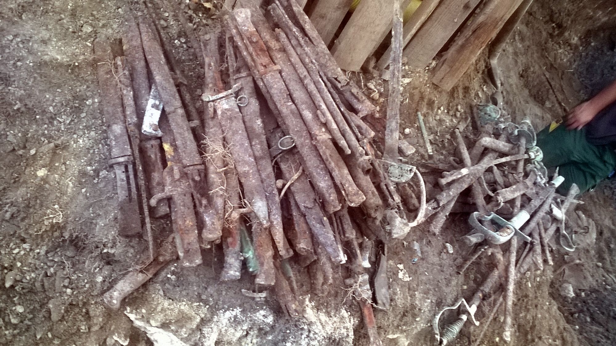 Dabei handelt es sich laut hinzugezogenen Experten vom Landesamt für Archäologie um Hieb- und Stichwaffen noch unbekannten Alters, darunter zahlreiche Degen und Bajonette. Woher genau sie stammen und wer sie versteckt haben könnte, ist noch nicht geklärt. Der Fund wird zunächst archiviert und die Aufarbeitung und Ausstellung geprüft. Für die Schüler des DKS war das dann tatsächlich mal Geschichte live.