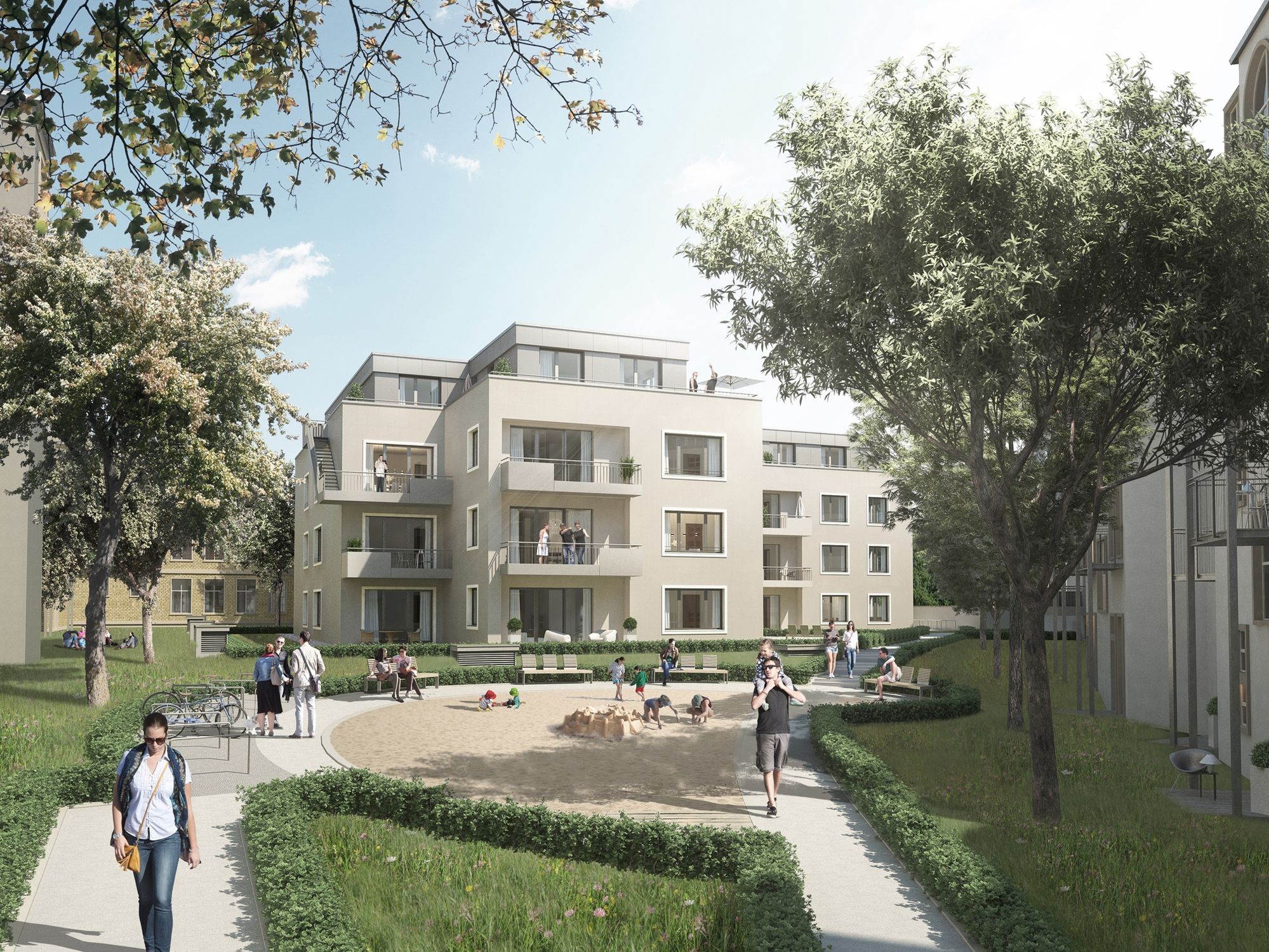 Geplante Ansicht vn der Prießnitzstraße – Visualisierung: Renderatelier